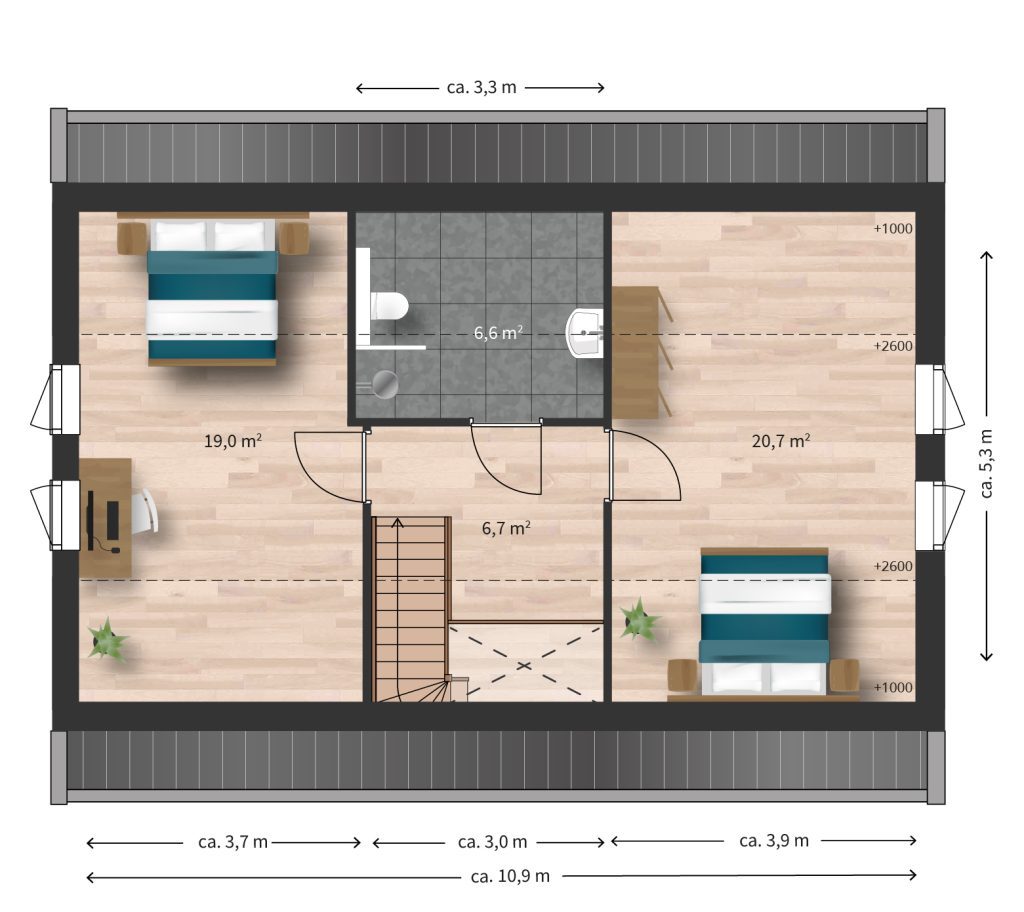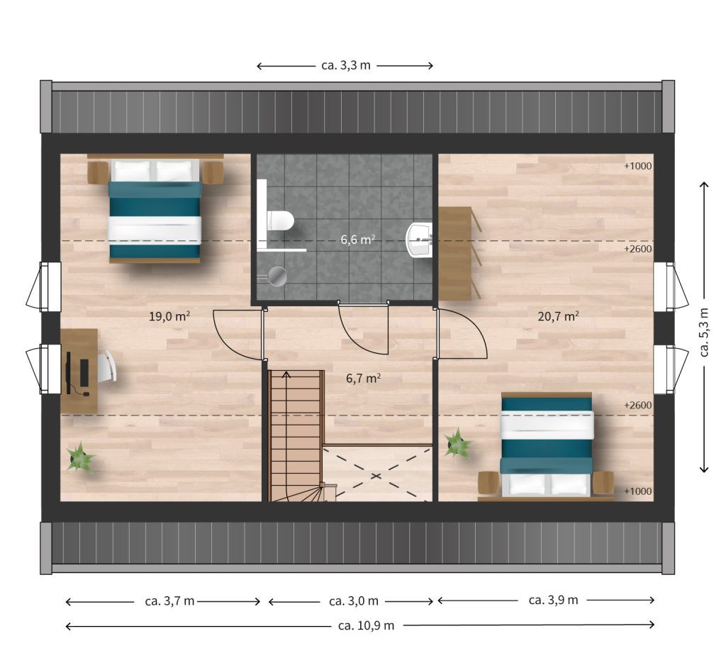 - Kaveloppervlakte van ca. 257 tot 273 m².