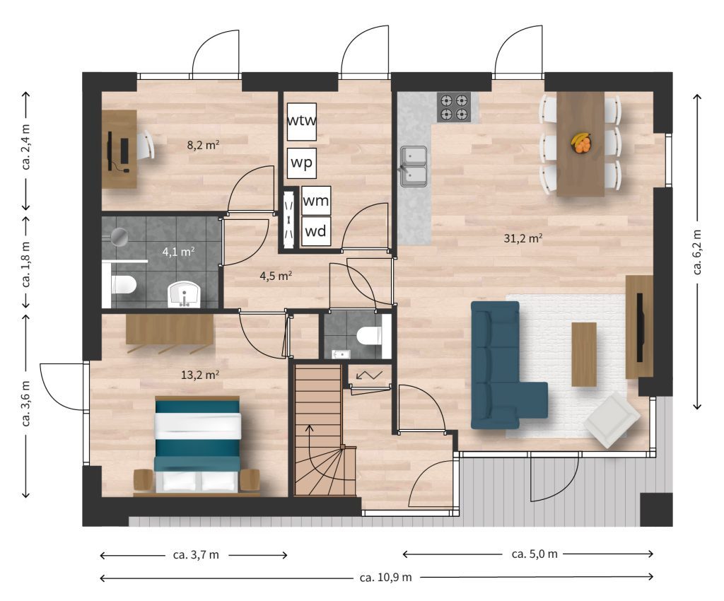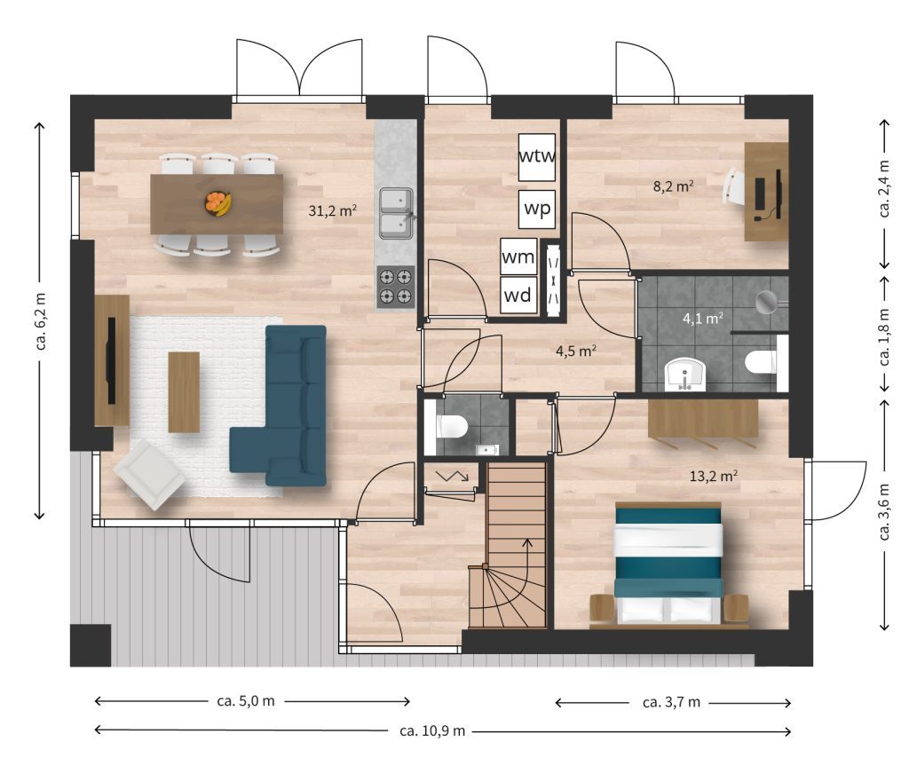 - Woonoppervlakte van ca. 135 m² g.o inclusief berging.