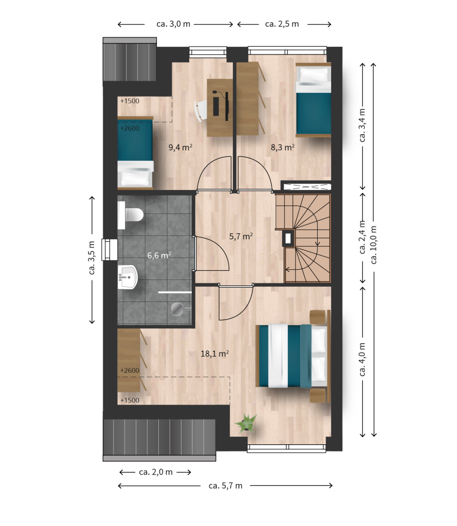 - Badkamer met douche en toilet op de eerste verdieping.