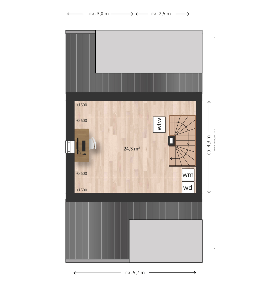 - Kaveloppervlakte van ca. 308 tot 343 m².