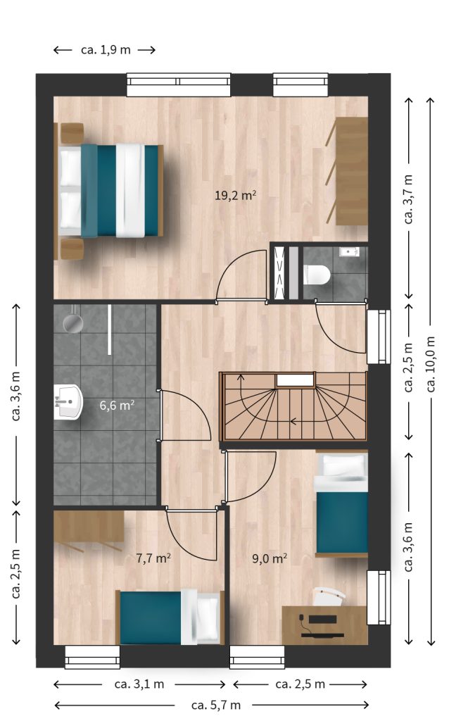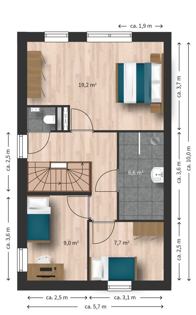 • Kaveloppervlakte van ca. 280 tot 357 m².